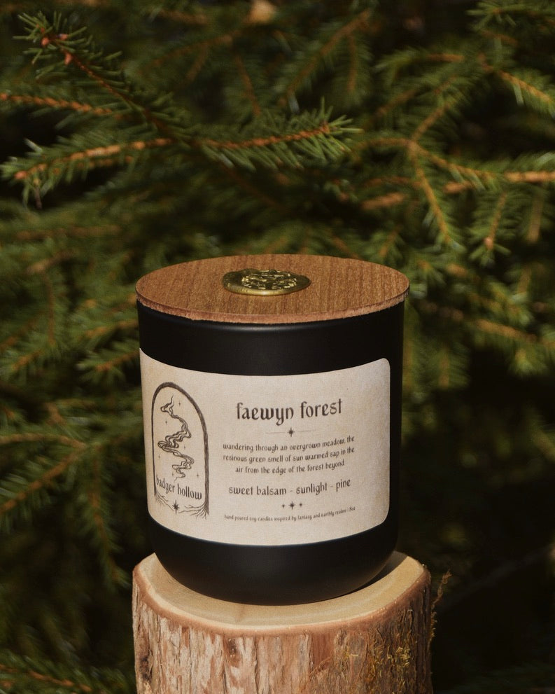 ✴︎ matte black glass jar with wooden lid adorned with a wax seal